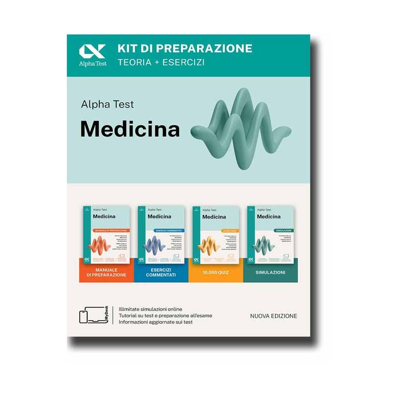 Per l'ammissione a: - Medicina - Odontoiatria - Veterinaria Valido anche per: Cattolica - San Raffaele - Campus Bio-Medico. Questo kit è una soluzione completa per prepararti al test di Medicina, Odontoiatria e Veterinaria. Comprende quattro volumi accompagnati da contenuti digitali esclusivi facilmente accessibili su MyDesk, la piattaforma digitale di Alpha Test per esercitarti ovunque ti trovi e contiene i quesiti della banca dati ufficiale 2024: - Manuale di teoria - Esercizi commentati - Simulazioni - 10.000 quiz MANUALE In un unico manuale trovi tutta la teoria di biologia, chimica e fisica, matematica e ragionamento, comprensione del testo e competenze acquisite negli studi. Per ogni materia, il libro sintetizza tutto e solo quello che ti serve sapere per superare il test. Il manuale è suddiviso in unità, ciascuna scandita da lezioni dedicate a singoli argomenti. Alla fine di ogni unità è presente una sintesi delle lezioni che la compongono e sono inseriti alcuni quesiti riepilogativi corredati di spiegazione. Il libro è costellato di rimandi a contenuti digitali integrativi accessibili direttamente tramite QRcode: mappe, approfondimenti, videorisoluzioni ti aiutano in modo puntuale e immediato nella comprensione e nella memorizzazione. ESERCIZI COMMENTATI L’eserciziario contiene centinaia di quesiti suddivisi per materia, per argomento e per livello di difficoltà, tutti accompagnati da una spiegazione. Con questo libro: - prendi confidenza con le varie tipologie di quesiti della prova a test; - apprendi le tecniche di risoluzione più efficaci che ti faranno guadagnare tempo prezioso; - ripassi mettendo in pratica le nozioni teoriche acquisite. L'eserciziario comprende anche domande tratte dalla banca dati ufficiale 2024 di cui fornisce una traccia di risoluzione. Il libro è il ponte perfetto per passare dallo studio teorico alle esercitazioni intensive: ogni quesito rimanda puntualmente alla teoria del Manuale di preparazione agevolandoti nel ripasso. SIMULAZIONI Il libro delle simulazioni ti propone 10 prove, composte dai quesiti della banca dati ufficiale 2024, che riproducono fedelmente le caratteristiche del test di ammissione. Con questo libro ti eserciti secondo le stesse modalità dell’esame ufficiale, rispettando il tempo a disposizione, le modalità di svolgimento, i criteri di valutazione. Abituandoti alle condizioni reali della prova avrai un grande vantaggio il giorno dell’esame. 10.000 QUIZ Il quizzario è studiato per l’allenamento intensivo ai test a risposta multipla. Contiene 10.000 quesiti – compresi quelli della banca dati ufficiale 2024 – di tutte le tipologie e livelli di difficoltà, suddivisi per materia. Scegli da dove partire, magari dove hai più insicurezze, e vai con i quiz, tanti quiz. Puoi controllare solo qual è la risposta corretta, senza spiegazioni (per quelle c’è il libro degli esercizi commentati). In questo modo ripassi e ti abitui ai quesiti a risposta multipla.