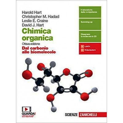 La chimica del carbonio, che è alla base di tanti prodotti naturali come il colesterolo e la nicotina, ha reso possibili tante tecnologie che usiamo nella vita di tutti i giorni. Ne sono un esempio la benzina, gli pneumatici delle automobili, gli abiti che indossiamo, la carta dei libri, i farmaci, i contenitori di plastica e i profumi. Il laboratorio delle competenze: alla fine di ogni capitolo, esercizi sulle competenze per potenziare le abilità nella risoluzione dei problemi e le capacità di pensiero critico e strategico. Summing-up: riassunti di fine capitolo in inglese per allenarsi nella comprensione del lessico scientifico e della terminologia di settore. Disegnare le molecole in 3D: un'appendice sul software Avogadro per la costruzione e la visualizzazione di modelli molecolari in tre dimensioni. L'eBook con tutte le pagine del libro da sfogliare, con video, videolezioni, PDF ed esercizi interattivi: 11 video LabOr (25 minuti), per esempio Come si riconoscono gli alcoli?; 4 videolezioni (25 minuti), per esempio Qual è l'ibridazione del carbonio?; 6 video La chimica e la biologia in 3D (35 minuti), per esempio Come funziona lo spettrometro di massa?; 3 video 3 minuti di salute (9 minuti), per esempio Quale effetto hanno le droghe sul nostro corpo?; 5 video 1 minuto di biologia (5 minuti), per esempio Che cosa sono i carboidrati?; 1 video Le biotecnologie (14 minuti): Come si fa il DNA fingerprinting?; 3 video 3 minuti di storia della scienza (7 minuti), per esempio Come è stata scoperta la relazione tra geni ed enzimi?; 15 schede in PDF Per saperne di più, per esempio I polimeri biologici e I surrogati dei grassi da carboidrati; 360 esercizi interattivi online su zte.zanichelli.it; la tavola periodica interattiva.