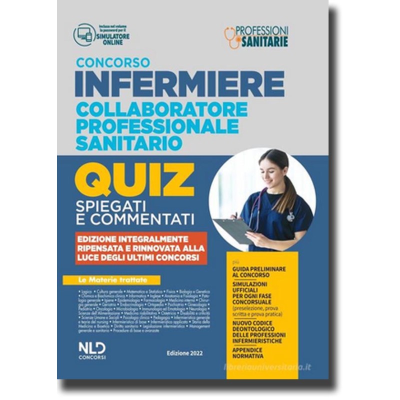 Il volume, totalmente rivisto e rinnovato, anche nella grafica, vuole essere un valido strumento per coloro che si apprestano a sostenere l’eventuale prova preselettiva, la prova scritta e la prova pratica dei concorsi pubblici per Collaboratore professionale sanitario – Infermiere. Il volume tratta tutti gli argomenti corrispondenti alle materie che solitamente ricorrono nei bandi di concorso delle Aziende ospedaliere e delle ASL delle diverse Regioni italiane e si divide in due parti: -la prima parte, contiene informazioni generali sui concorsi pubblici per infermieri e tecniche e consigli su come affrontare le prove; -la seconda parte raccoglie oltre 3000 quiz (per la maggior parte, commentati) a scelta multipla che puntano al ripasso degli argomenti più svariati: -- logica e cultura generale -- discipline scientifiche -- discipline linguistiche ed informatiche -- discipline medico-chirurgiche -- discipline medico-specialistiche -- discipline infermieristiche -- legislazione infermieristica e management sanitario. Il testo contiene esempi di procedure infermieristiche (di base ed avanzate), per la prova pratica, con numerosi modelli per esercitarsi sulle specifiche abilita operative necessarie per esercitare la professione. Completano il volume delle simulazioni delle prove d’esame, con quiz ufficiali ed una utilissima appendice normativa. Utilissimo il simulatore online, associato al volume, che permette di esercitarsi con infinite simulazioni, anche tratte da banche dati ufficiali.