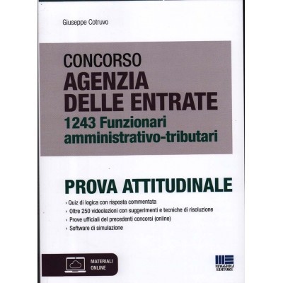 Il volume è un utile strumento di studio per la preparazione alla prova attitudinale del Concorso Agenzia delle Entrate 2021, per il reclutamento di Funzionari amministrativo-tributari: un libro cartaceo con espansioni online consistenti in videolezioni a supporto della parte cartacea. Il testo offre un'ampia panoramica delle tipologie di quiz di logica assegnate negli ultimi anni (serie numeriche, ragionamento astratto e capacità visiva, logica figurale, logica matematica, ragionamento critico numerico, problem solving, logica deduttiva, logica verbale, comprensione verbale, serie verbali, analogie verbali, ragionamento verbale, frasi da completare, grammatica, ragionamento critico verbale). Accanto ad ogni quiz è riportato il riferimento alla videolezione (in tutto sono oltre 250) in cui sono spiegati, schematizzati e illustrati i passaggi e le tecniche da adottare per arrivare alla risoluzione. I quiz sono suddivisi in 16 simulazioni, permettendo al al candidato di esercitarsi nella gestione del tempo e verificare il proprio livello di preparazione. Dopo ogni simulazione sono fornite le spiegazioni di tutti i quiz. Un libro e un videocorso fusi in un unico prodotto editoriale, che ha avuto ottimi riscontri positivi per i precedenti concorsi di Agenzia delle Entrate, Agenzia delle Dogane e altri enti pubblici, per offrire al candidato uno strumento completo che consenta di superare la prova attitudinale. Nella sezione online, raggiungibile seguendo le istruzioni riportate in fondo al libro, sono disponibili: videolezioni di logica; software di simulazione per nuove esercitazioni; selezione di prove ufficiali dei concorsi precedenti indetti dall'Agenzia delle Entrate.