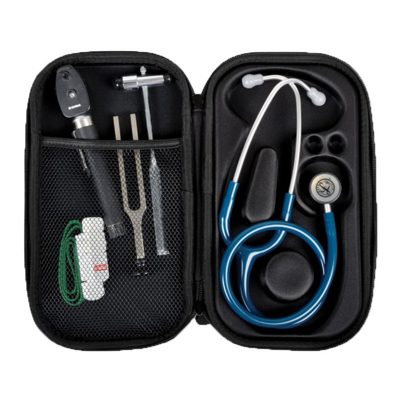 Il suo design mantiene lo stetoscopio in posizione da un interno preformato, mantenendo protetto il diaframma sensibile e il tubo. Struttura leggera in EVA e robusto guscio protettivo esterno rivestito in nylon 1680D.